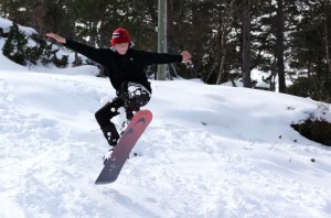 9. april: Fredrik Dahle Klocke kjørte snowboard i akebakken rett ved Vikvatnet. (Foto: Ove Magne Ribsskog)