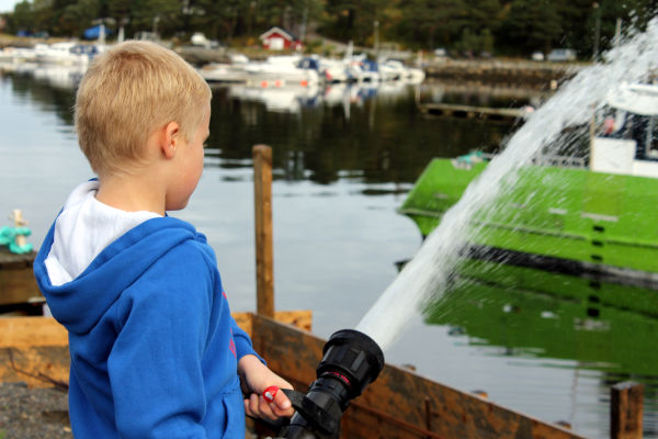 Premien, som var en røykvarsler, ble vunnet av Ole Kristian Søraa. Guro syntes ambulanse og brannbil var artigst. Gjester fra Steinkjer hadde også tatt turen ned på brannstasjonen. De har hytte i Flatanger. Sondre synes det var moro å holde på med slangen.