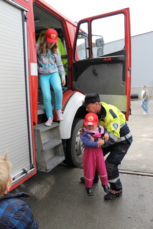 Ungene sto i kø for å kjøre brannbil og ambulanse, og de minste måtte ha hjelp for å komme seg ut av brannbilen.