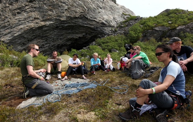Sju av medlemmene startet fredag på et grunnkurs i fjellklatring. Flere av dem har prøvd seg så vidt før, men ingen er fullbefarne fjellklatrere.