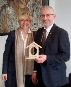 Ordfører Olav Jørgen Bjørkås møtte Navarsete på Verdal mandag, og fikk da overlevert et lite hus som symbol på at Flatanger nå er med i prosjektet.