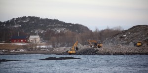 Arbeidet på tomta begynte rundt nyttår, og det er sprengt ut mye stein for å gjøre plass til de tre planlagte husene. Gravemaskinene gjør seg ferdig i disse dager.
