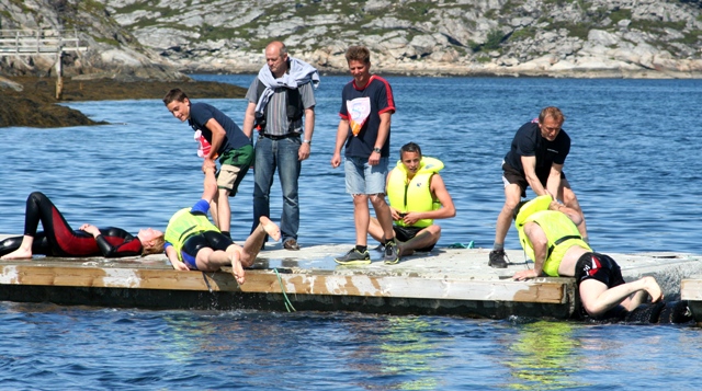 Helga starter med rekeaften på brygga fredag kveld, og lørdag blir det full rulle med fiskekonkurranse, rokonkurranse og triatlon-stafett, der deltakerne både må løpe, sykle eller svømme en etappe hver. Med sjøtemperatur på rundt 10 grader kan det bli en kald fornøyelse…