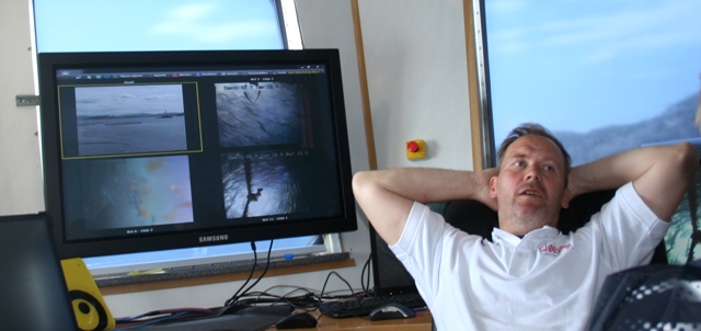I dag styres fôring med data og fôringa overvåkes via kamera i merdene. Raymond Johansen passer fisk for mange millioner via dataskjermen hos Bjørøya Fiskeoppdrett.