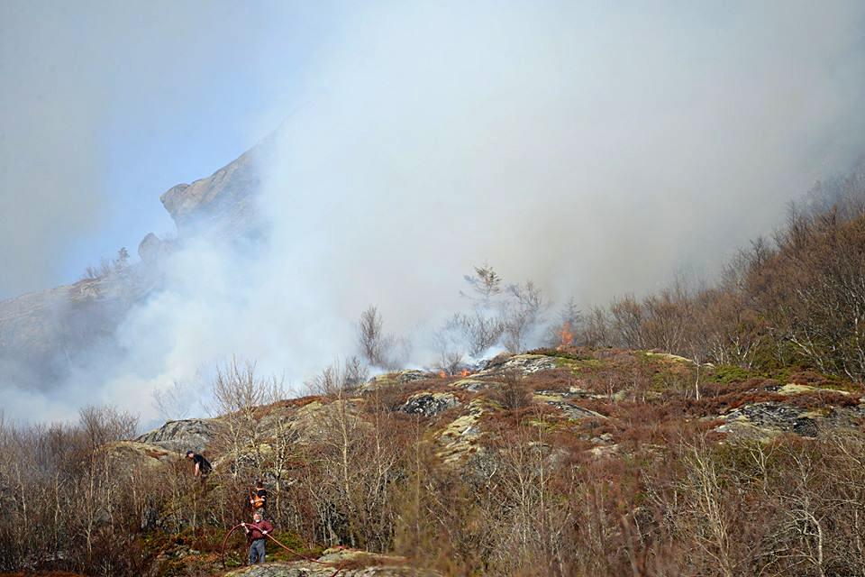 – Vinden dreide mer vestlig, og det var ikke fare for bebyggelsen. Men hadde brannen spredt seg opp Utvordfjellet og mot Festningen, måtte vi hatt bistand fra helikopter, sier Haukø.