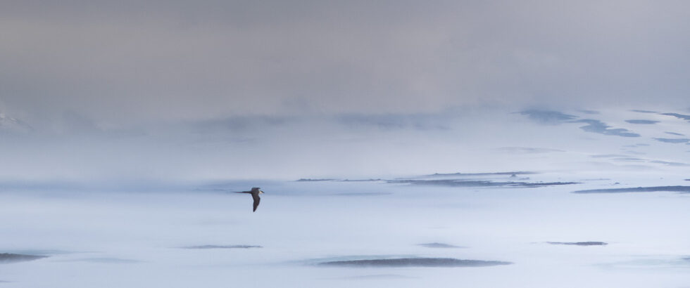 Bildet av fjelljoen ble tatt i Børgefjell en tidlig morgen i juni. Juryen påpeker at de mørke flekkene i snøen fremhever miljøet og lager en god komposisjon og dybde i bildet.