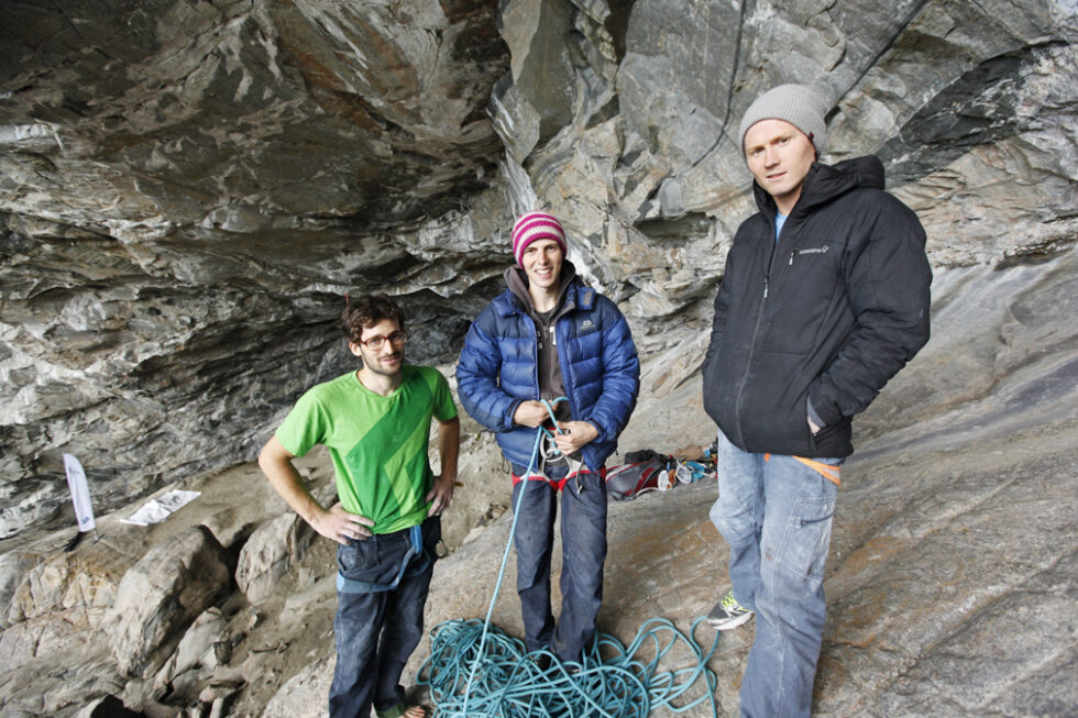 Og lørdag er det konkurranse mellom Magnus Midtbø, Daniel Jung og Erik Grandelius om hvem som er best til å klatre en nyboltet rute.