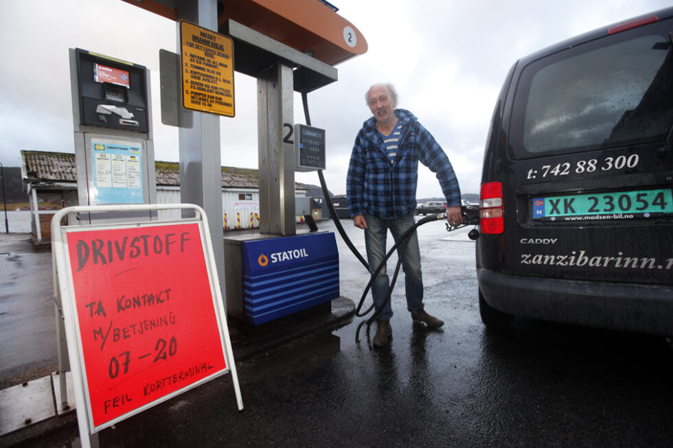 – Det er telefonen vi selger på, men jeg skjønner at det ikke er stort å gjøre med dette, sier Aakervik, som var innom Spar-butikken for å tanke diesel. Der må det også improviseres når nettet er nede.