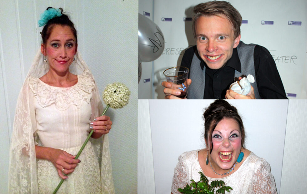 – Vi skal vise fram et bryllup på godt og vondt – mest på vondt, sier Terese og Anna Josefine, som sammen med resten av gjengen har dekket på runde bord med hvite duker og funnet fram bryllupsantrekket.
