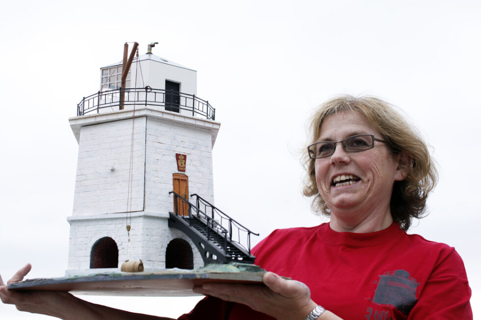Modellen av fyret, laget av tidligere leder i Villa Fyr Venneforening Svein Soelberg, blir også med til Villa. – Har du lyst til å se hva som skjuler seg inni den, så må du ta turen ut til Villa søndag, sier hun.