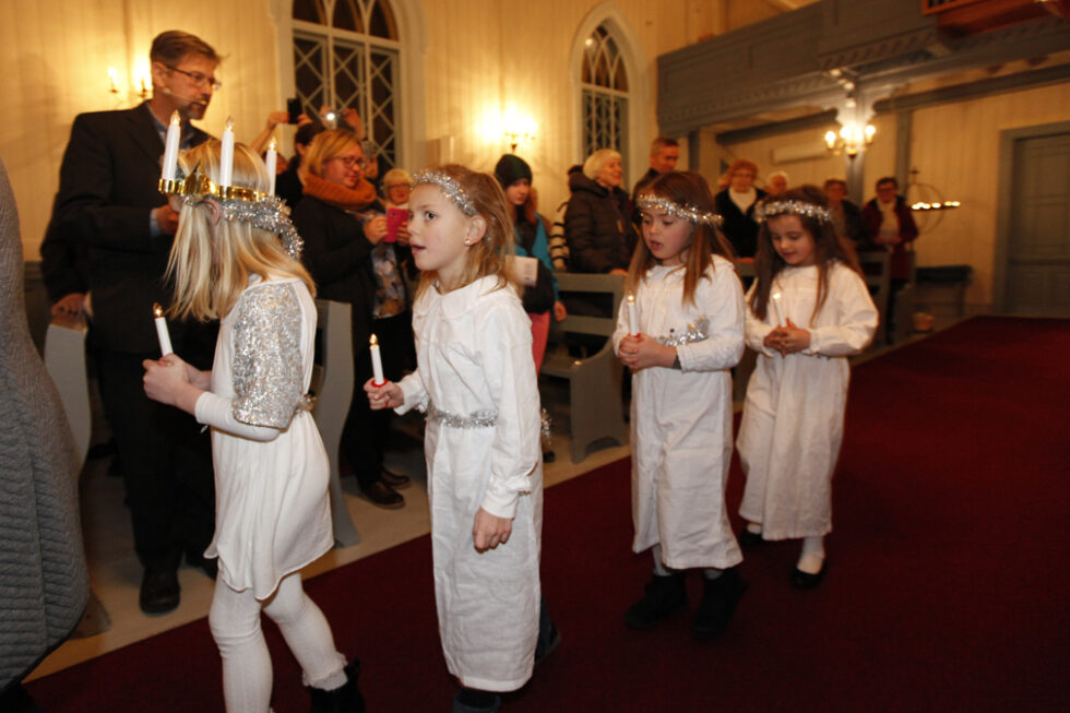 Jentene i Luciatoget sørget for å sette folk i julestemning, da jula ble sunget inn i Vik kirke søndag kveld.