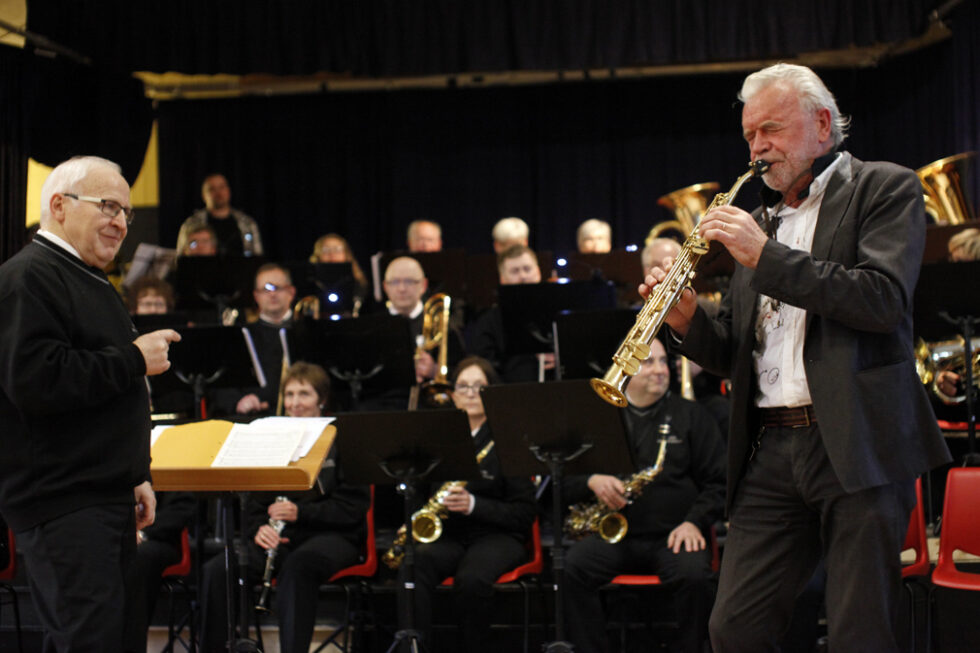 – Asmund påsto at det gikk ikke an å spille den på saksofon, men jeg sa jeg hadde øvd den inn, fortalte Inderberg, før han grep barytonsaksofonen og demonstrerte at det lar seg gjøre – i alle fall om du heter John Pål Inderberg…