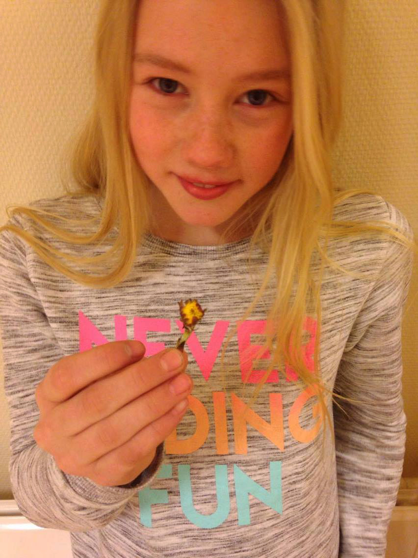 Ariel fant det som vel må være årets første hestehov i skolegården på Lauvsnes skole torsdag.