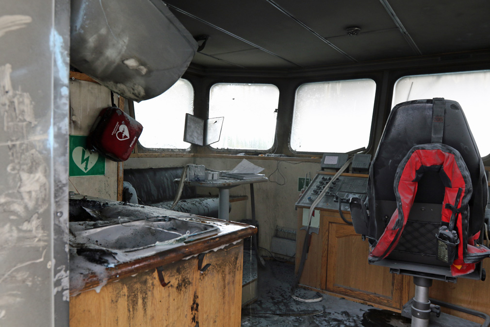 Styrhuset er ikke utbrent, men nedsotet og skadet av slokkemiddel. Oppdrettsbåten er satt ut av drift for ei tid framover.