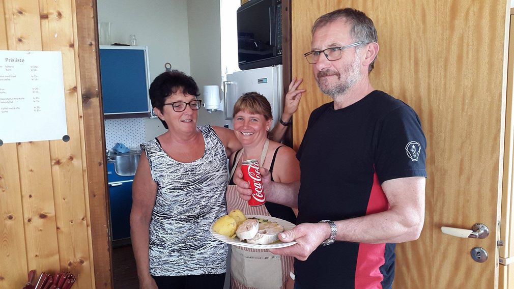 Villaks fra Bjørn Flore ble tilberedt av Berit Bjørkås (f.v) og Susann Havn, og spist av Odd Bjørkås.