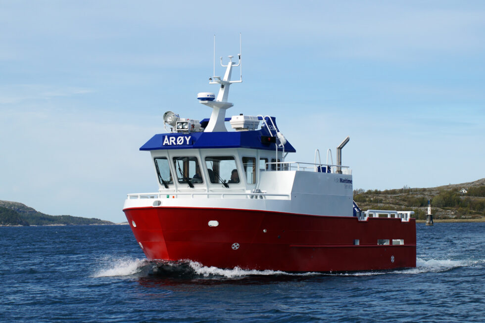 Malt i nasjonalfargene, satte byggenummer 65 fra Folla Maritime Service kursen for Finnmark. Der skal båten tjenestegjøre hos Norway Royal Salmon.