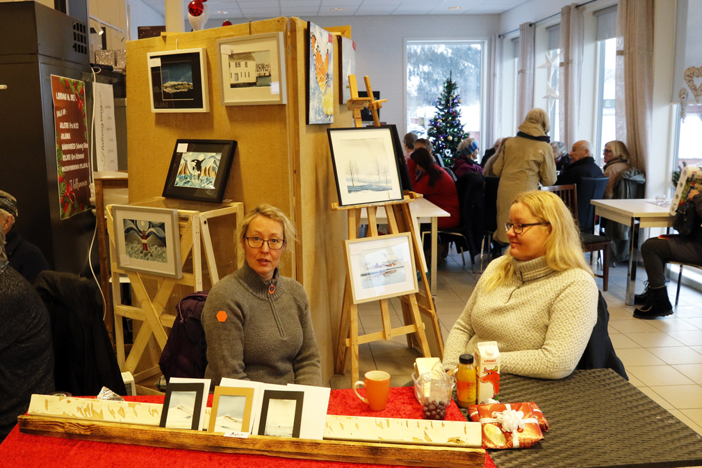 Gro Estensen og Tove Mette Estensen hadde julesalg ved kafékroken, der også Solveig Ekker solgte håndarbeid.