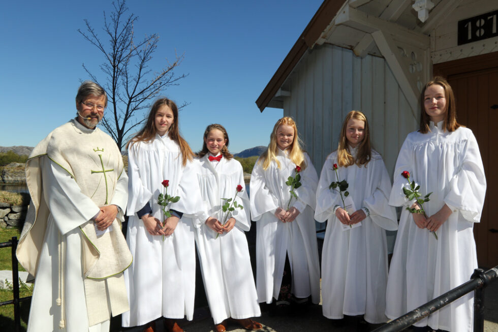 Grønt lauv og strålende sol ga en flott ramme om konfirmasjonen i Løvøy kirke lørdag.