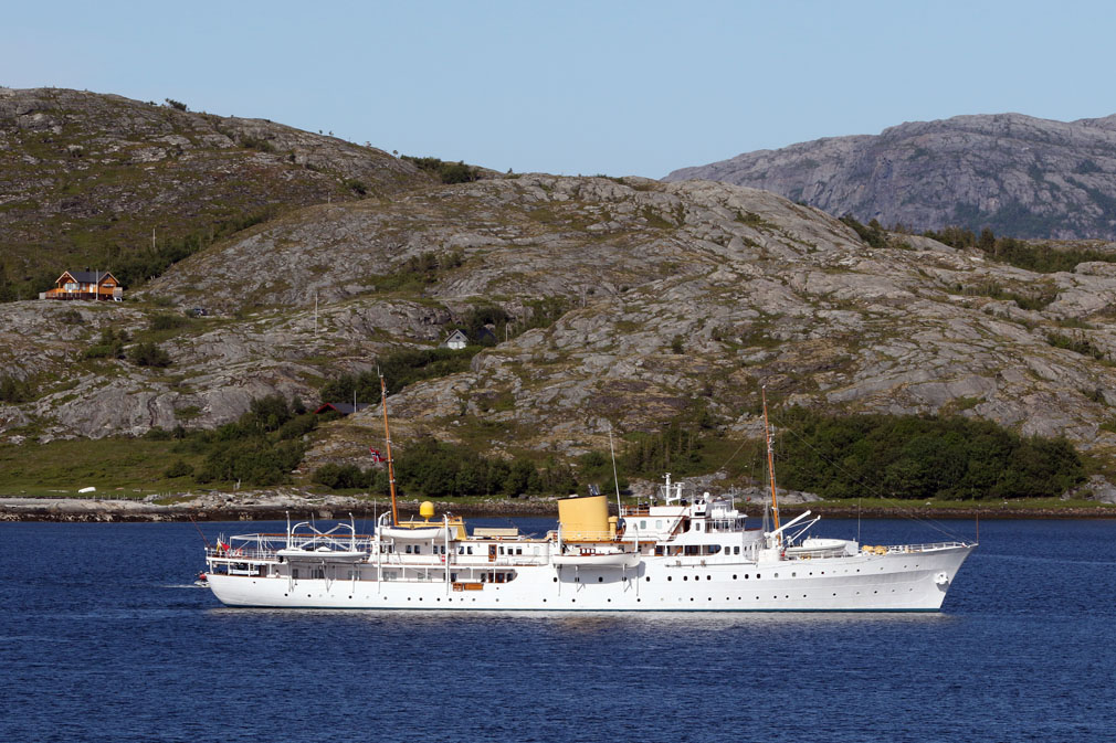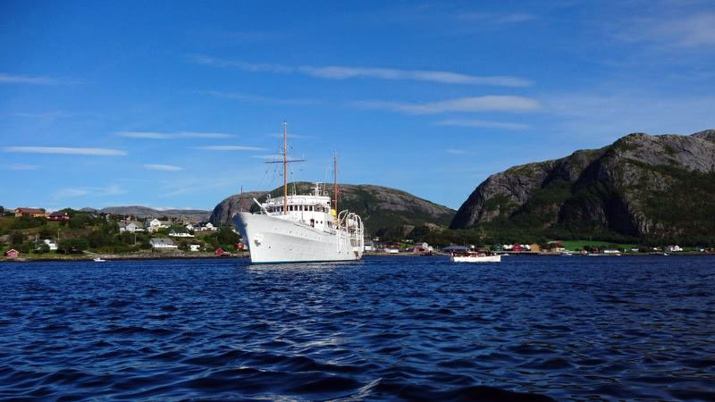 Ute på fjorden, mellom Løvøya og Storlavika, hadde nemlig Kongeskipet lagt seg til. Det var tydelig at skipet var ute på tokt for å kjøre igjennom programmet når kronprinsparet i september kommer på besøk.