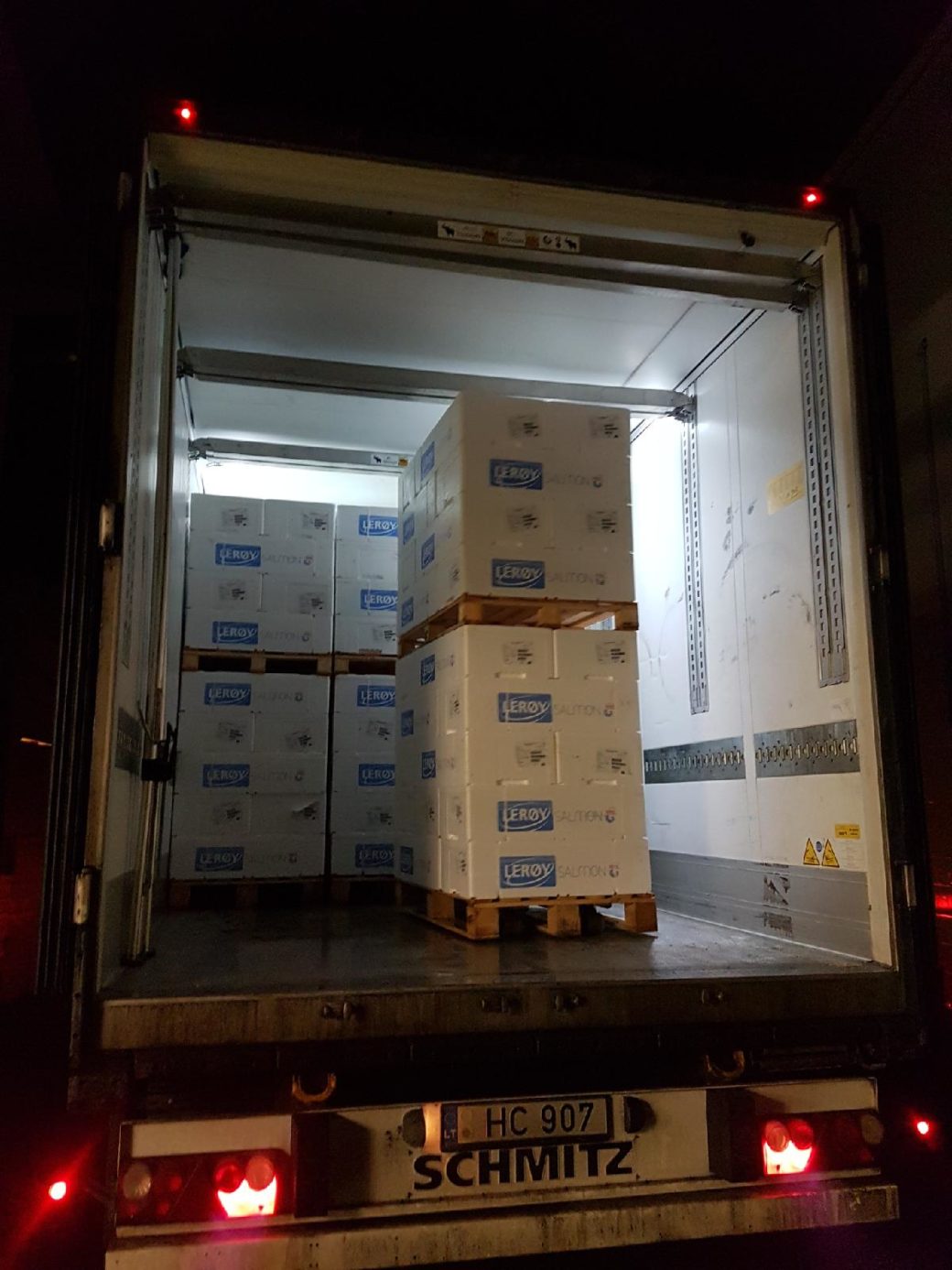 Sent torsdag kveld ble første trailer lastet opp med torsk, slaktet ved Nesset. (Foto: Kåre J. Devik)