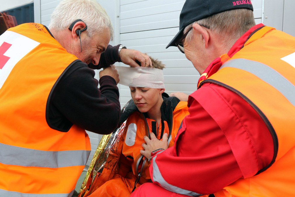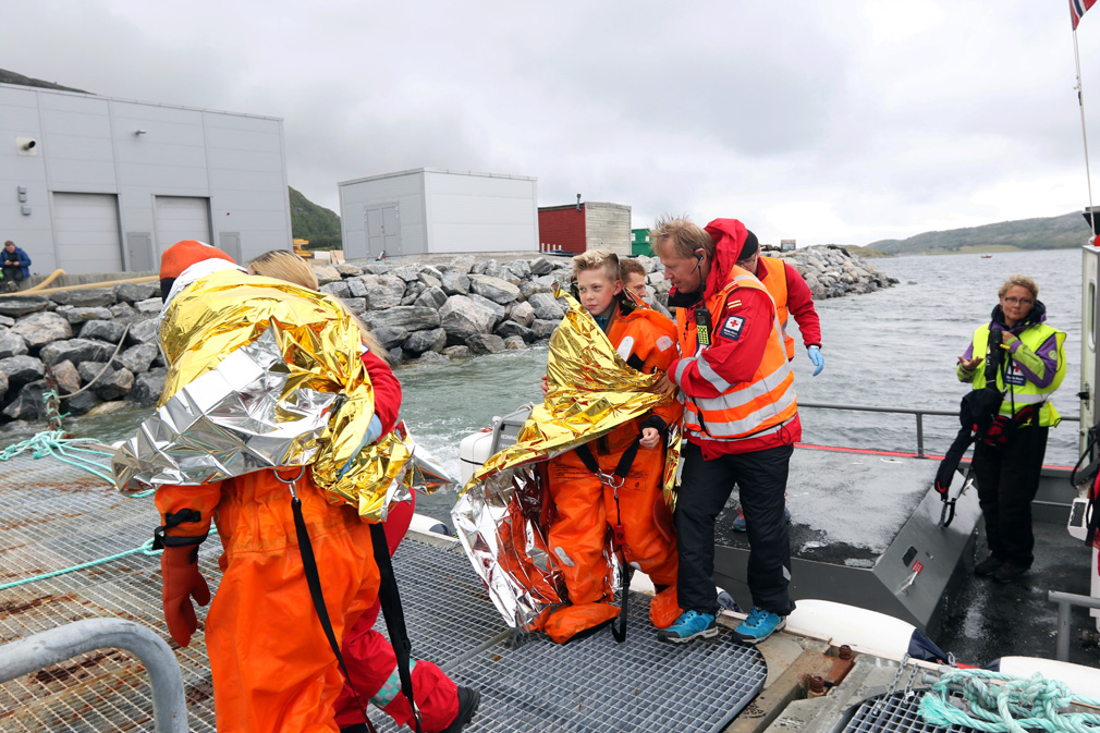 På land ble de tatt imot av mannskaper fra Røde Kors og ambulansen. De ble sjekket for skader og behandlet etter boka.