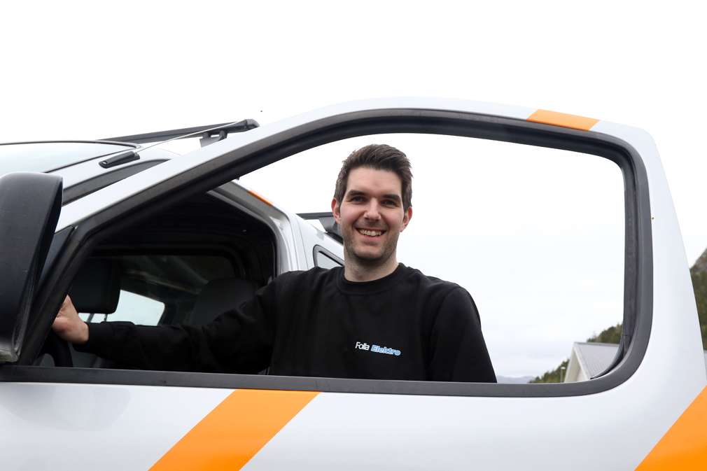 ‘- Vi ser at potensialet er stort. Vi satser på å bli flere etter hvert, og tar sikte på å bli fem ansatte innen utgangen av året, sier daglig leder Aleksander Olsen i Folla Elektro AS.