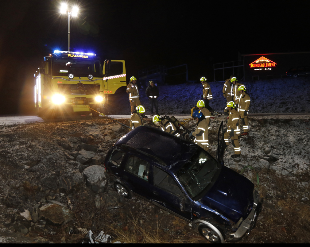 En trafikkulykke var utgangspunktet for mandagsøvelsen, som ble Halvor Trefjords siste kveld som brannmann i Flatanger.
