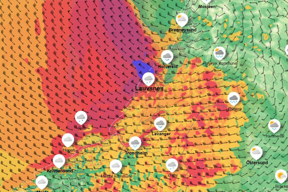 Vinden dreier på vest og nordvest. – I den overgangsfasen kan det bli kortvarig orkan på kysten av Trøndelag, sier statsmeteorolog Haldis Berge til yr.no.