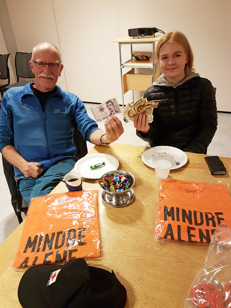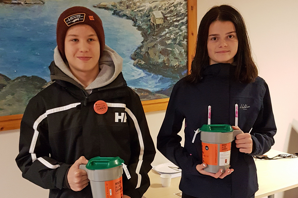 Otto K. Sandnes og Hanne Marie Tyldum Ribsskog dro rundt med bøsse for å samle inn penger til Kirkens Bymisjon.
