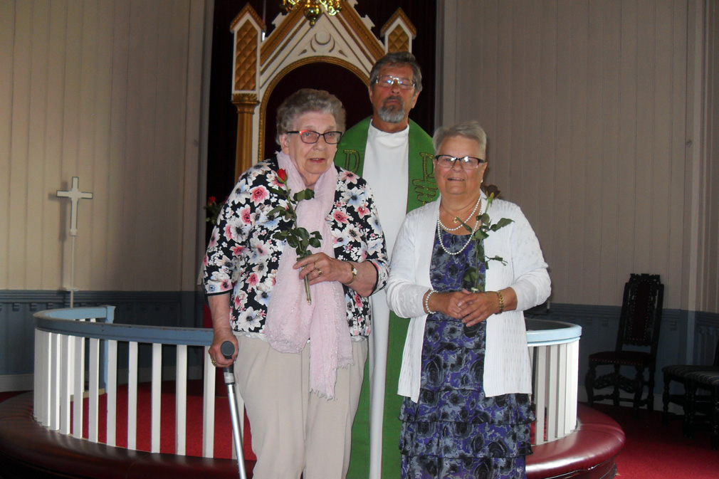 70-årsjubilanter, fra venstre: Solveig Kristiansen Øien, Sokneprest Torgeir Liasjø og Elbjørg Sofie Strand Holand.