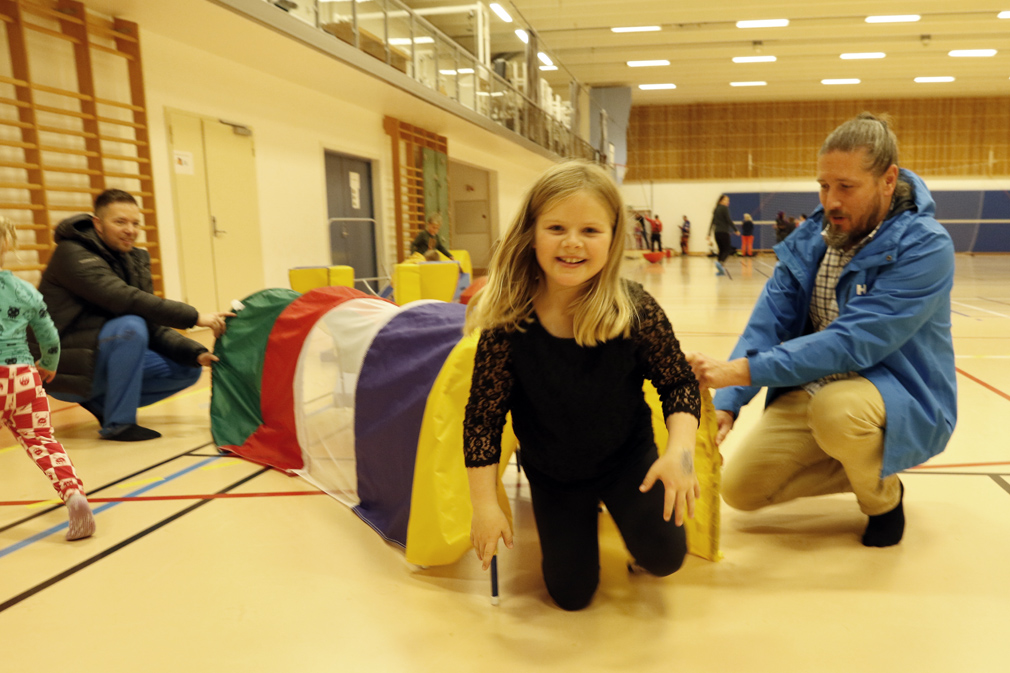 Erika og mange andre unger storkoste seg i hallen, mens det var ruskevær ute.