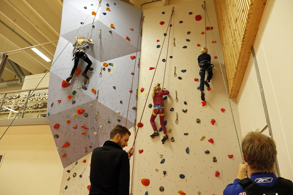 Når det ikke ble vær til å klatre ute, var klatreveggen i hallen et godt alternativ.