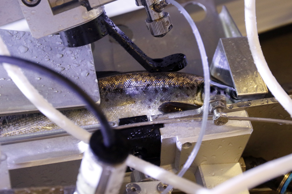 Fisken blir bedøvd før den går inn i vaksinemaskinen, der en blir scannet og veid – slik at rett punkt for å sette vaksinen blir funnet. Etterpå blir fisken sortert etter størrelse.
