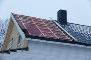 Takplater tatt av stormen