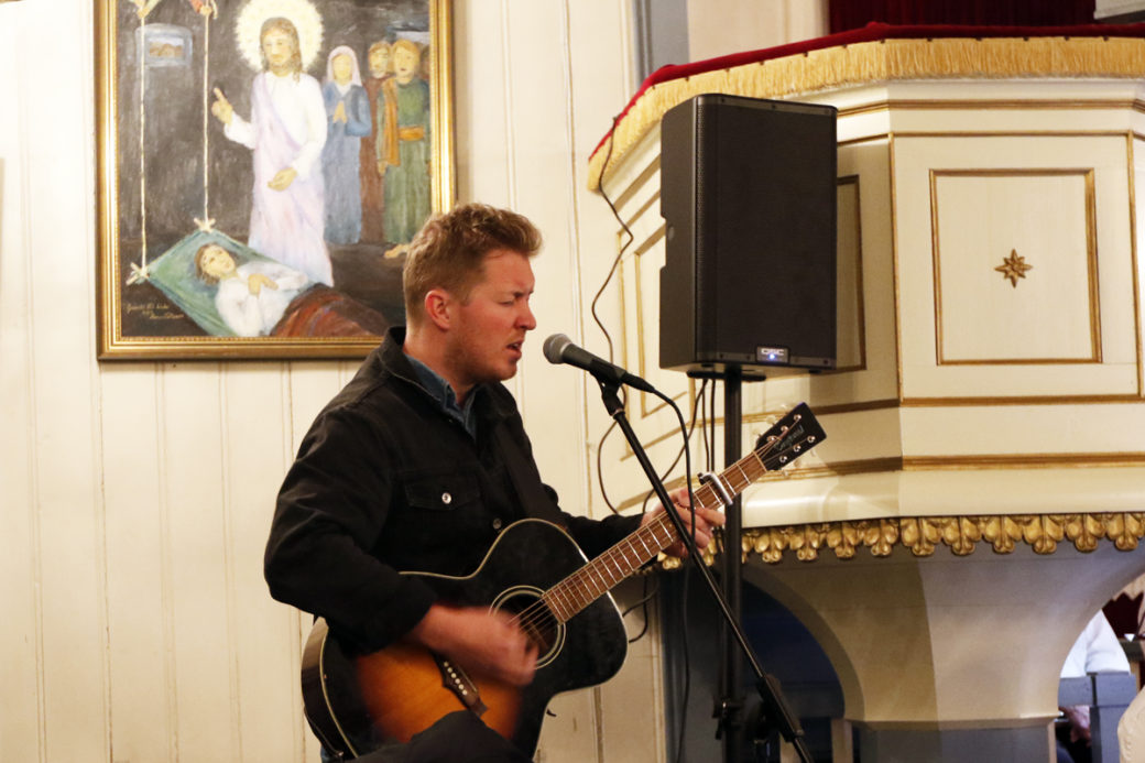 Jens Martin Olsen i aksjon under konserten i Vik kirke.