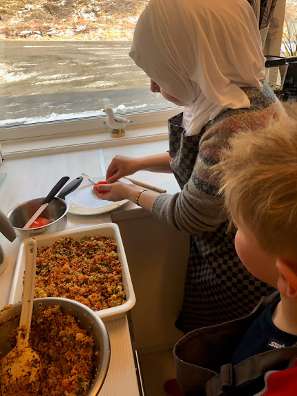Elevene deltok aktivt i arbeidet med kutting av grønnsaker, forming av kjøttboller, koking og steking. Amani hadde med en del ingredienser som var ukjente for elevene, så som for eksempel 7-krydder og granateplesirup. Elevene var vitebegjærlige og nysgjerrige, og Amani tok seg god tid til både forklaring og prøvesmaking.