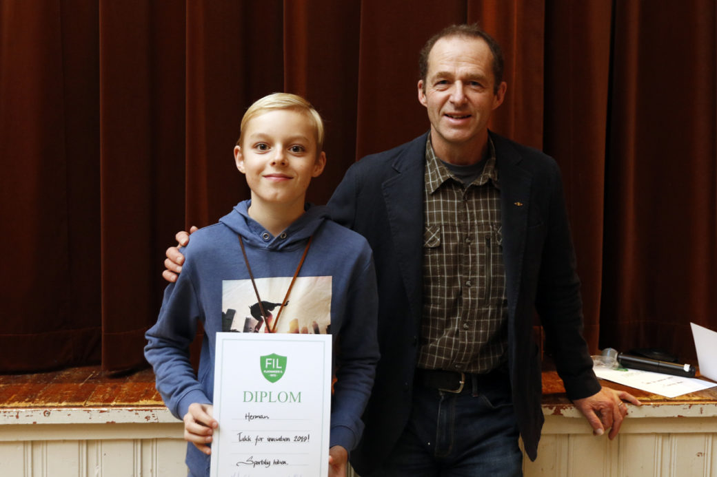 Herman Sæther Haagensen var den eneste i klatregruppa som deltok på årsfesten, og han fikk diplom av Morten Strøm.
