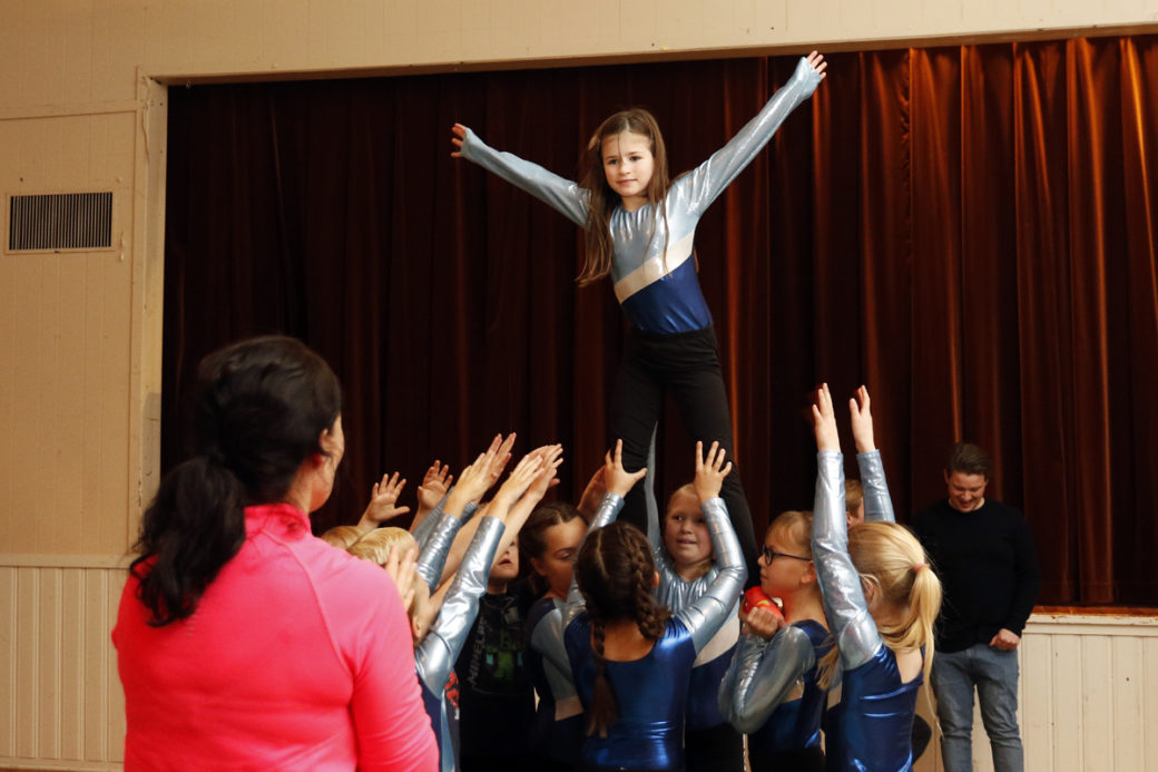 Hele 45 barn er med på turntrening hver tirsdag. De holdt en oppvisning på årsfesten, der også tre seniorspillere fikk slått hull på myten om at fotballspillere er stokk stive.