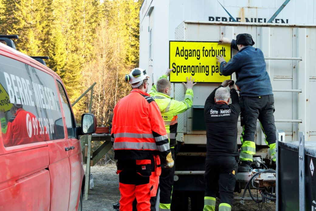 Torsdag morgen satte entreprenøren opp skilt med «Adgang forbudt. Sprengning pågår».
