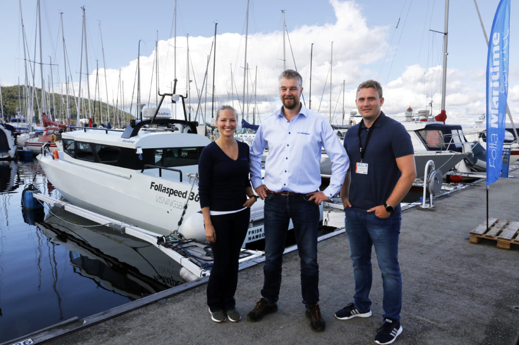 Camilla Kvaløsæter, Frode Løvmo og Rune Brennvolleng i Folla Maritime var på plass med visningsbåt.