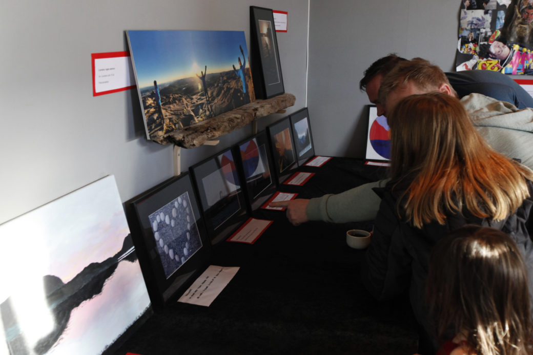 I pausen fikk publikum se de mange bidragene på kunsutstillinga. Der var det både fotografier, malerier, collage og installasjoner. Deltakere på utstillinga var Ylva Haagensen, Lavrans Lein, Helga Bruheim, Herman Sæher Haagensen, Nora Nikoline Kløven Lein, Sverre Størker Angen Wibstad, Magnus Tyldum Ribsskog, Hanne Marie Tyldum Ribsskog og kulturverkstedgjengen.