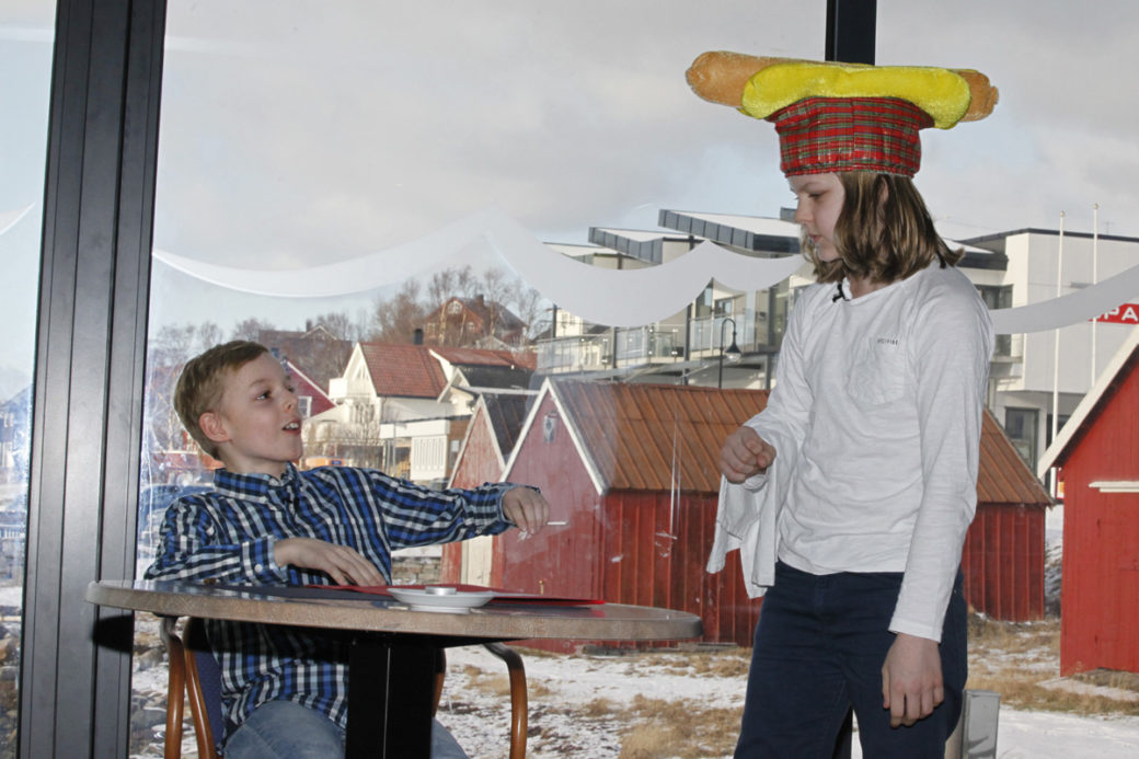 Det siste sceneinnslaget var ved Johannes Lein og Herman Sæther Haagensen, begge 11 år, og handlet om hva som kan skje en kveld på restaurant.