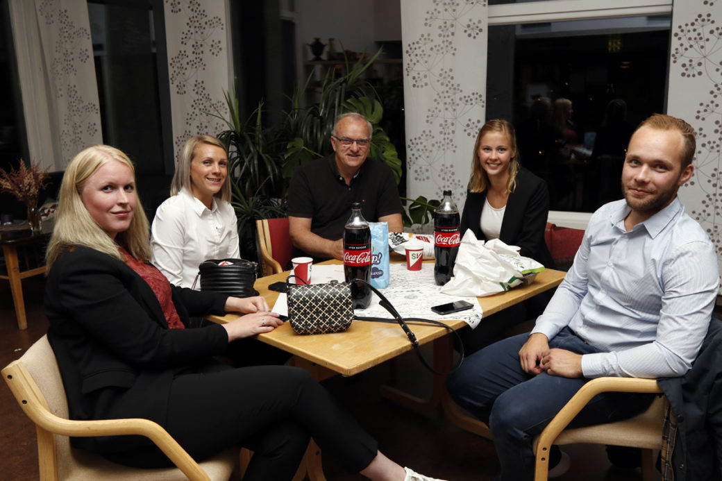 Høyre var ikke fornøyd med valgresultatet i Flatanger. På valgvake, fra venstre: Kine Løfsnæs Sivertsen, Aina Wibstad, Knut Staven, Emilie Valstad og Sondre Johnsrud