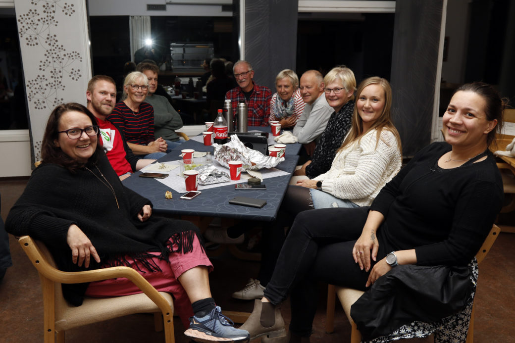 God stemning rundt SV-bordet, selv om valgresultatet neppe holder til ordførerskifte i Flatanger. Fra venstre: Turid Kjendlie, Jonas Wiik, Ingeborg Hagerup, Trond Are Strand, Otto Sandnes, Ragnhild Sivertsen, Helge Kristiansen, Hilde Tyldum Stordahl, Ida-Magrit Lindstad Angen og Anastasia Sæther.