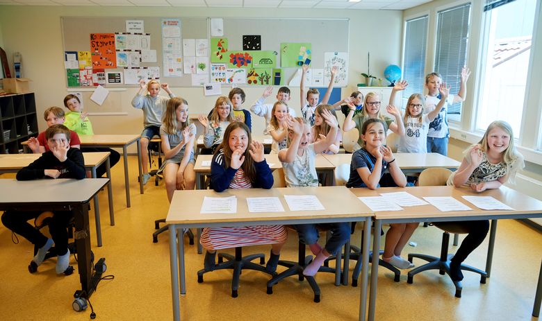 – Se, nå kommer det noen, sa en av elevene på Lauvsnes skole. Spenningen var til å ta og føle på, før selveste stortingspresidenten viste seg på lerretet.