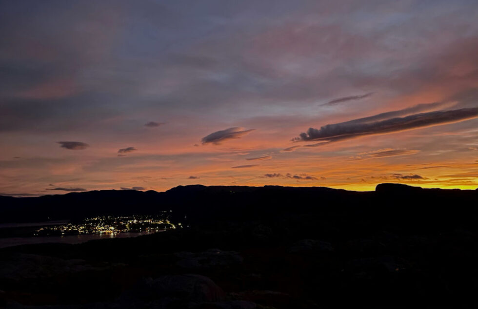 Stian Holmen Lein fanget morgenrøden over Lauvsnes og resten av Flatanger under en morgentur på Nordlifjellet tirsdag.