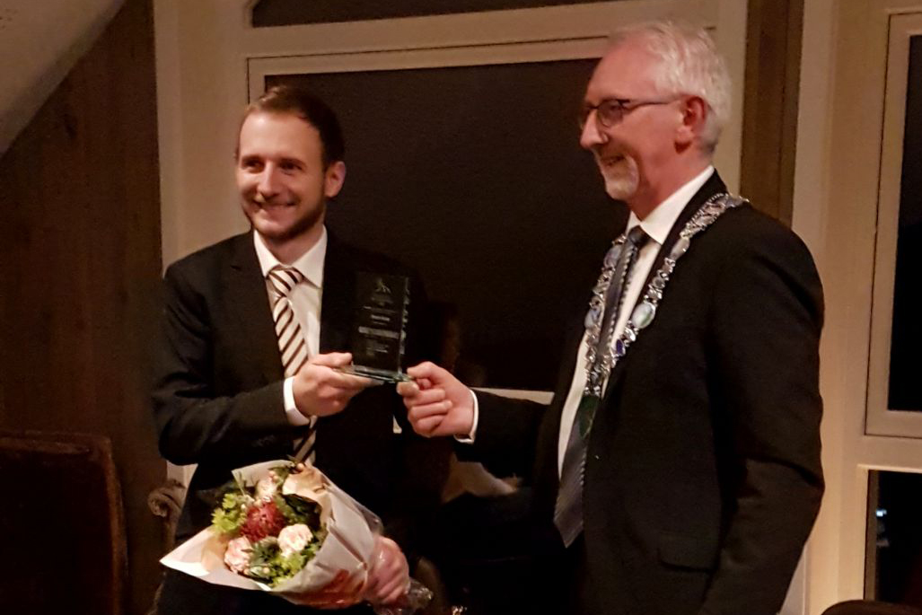 Michael Strøm fikk overrakt prisen for årets ildsjel i Flatanger av ordfører Olav Jørgen Bjørkås. (Foto: Morten Strøm)