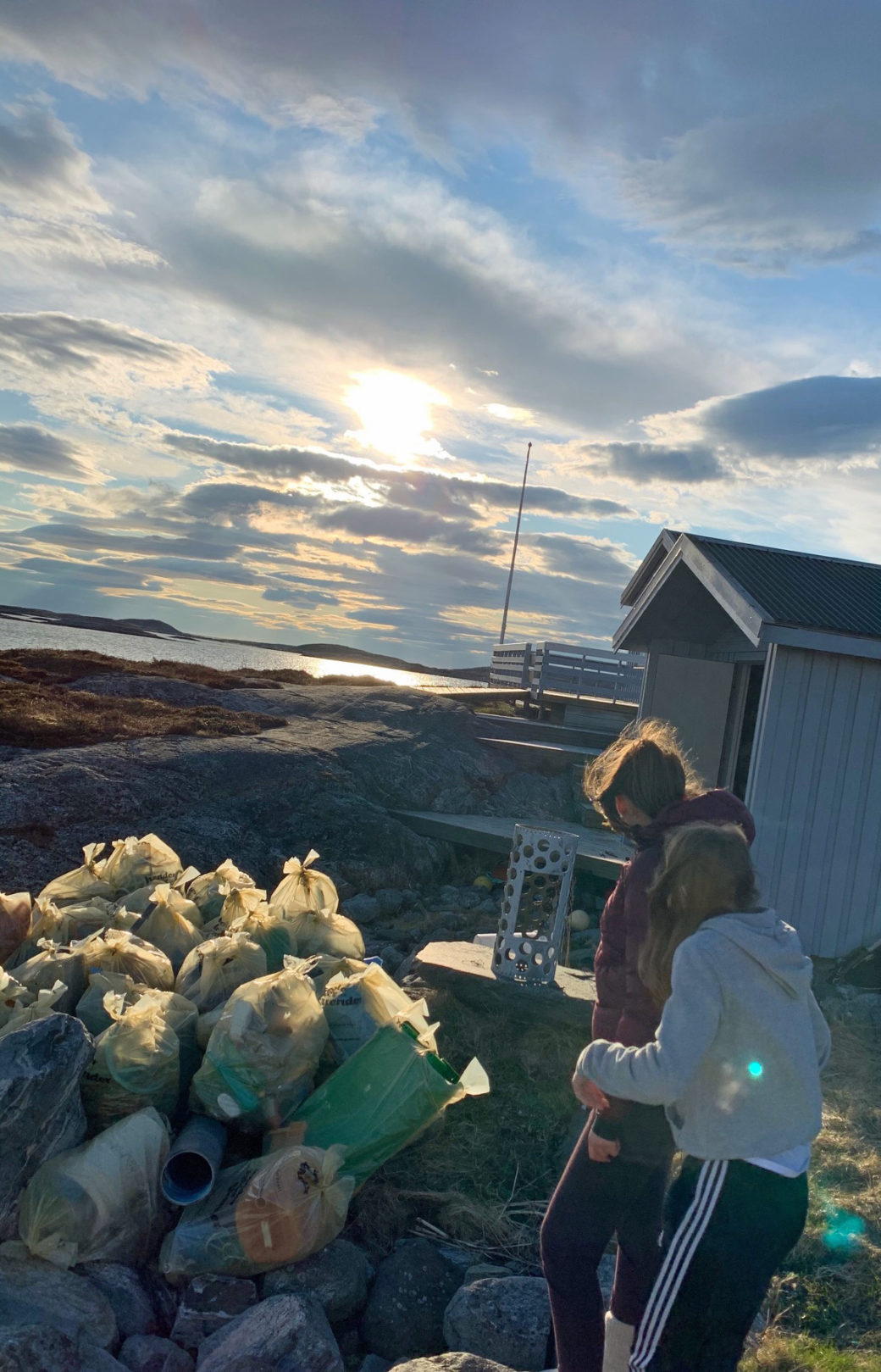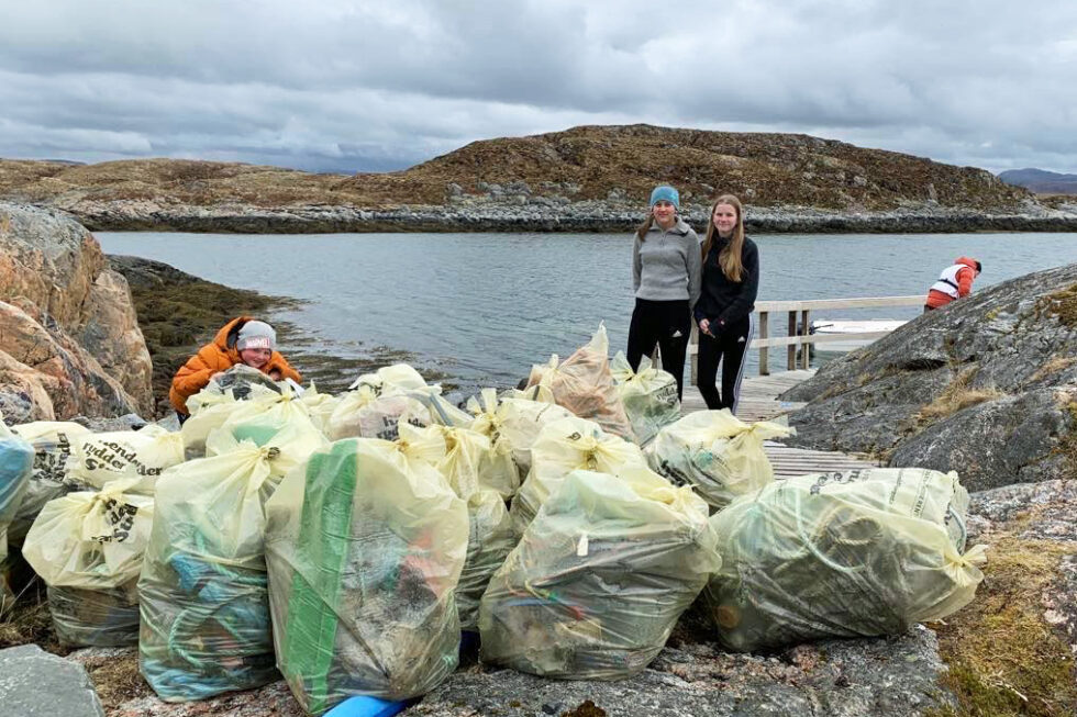 Ada og Isabell plukket hele 25 sekker med søppel i løpet av noen timer i Gladsøyværet i Flatanger.
