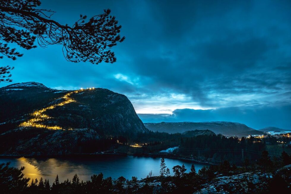 Fakkeltoget starter kl. 18 fra fjellfoten. Hver enkelt tar med fakkel selv og blir med så langt man ønsker. Alle har ansvar for å overholde smittevernreglene, skriver Storfjellets venner på Facebook.