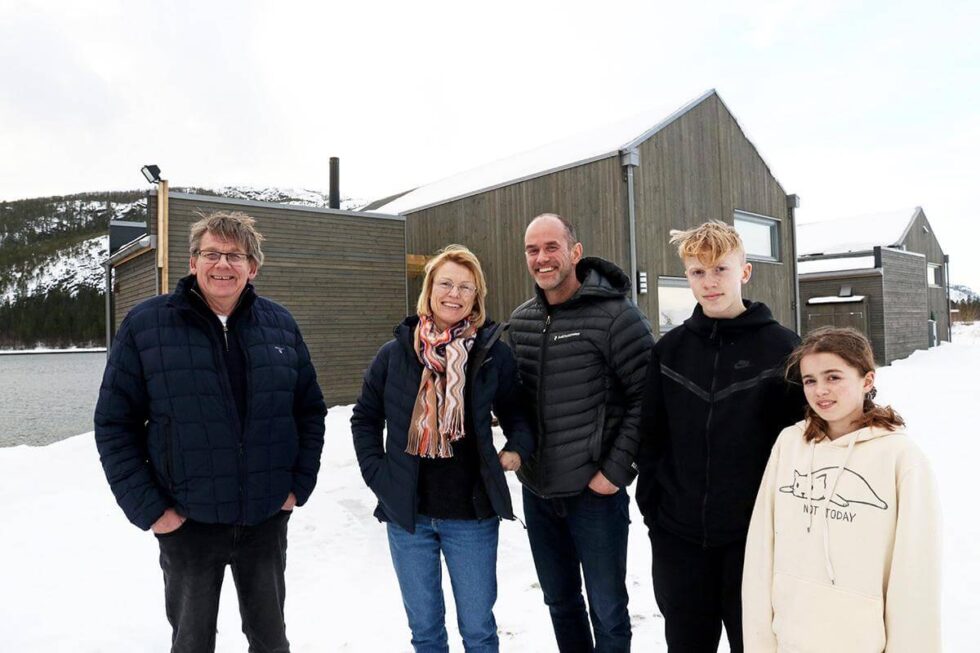 Cornelia Vikan, Harald Trettenes og barna Sverre (13) og Ingerid (11) fra Stjørdal flyttet lørdag inn i ei av de nye rorbuene i Kjærlighetsstien.